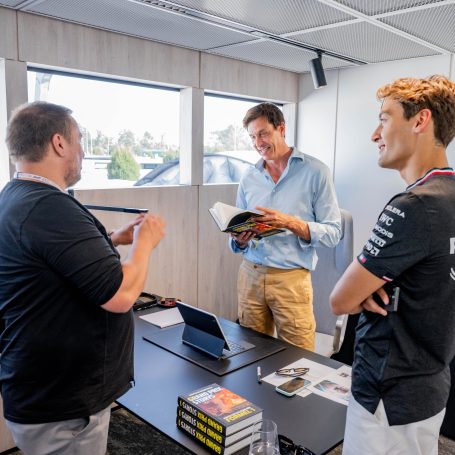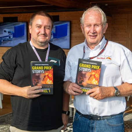 »Das Buch trägt jenes Foto auf dem Cover, mit dem der Fotograf Andy Hone den World-Sports-Photography-Award gewonnen hat. Es zeigt den unglaublichen Feuerunfall in Bahrain 2020, und wie Romain Grosjean gerade wie Phoenix aus der Asche steigt. The Phoenix, wie er sich in seinen E-Mail-Abbindern auch selbst nennt, war einer von vielen Gesprächspartnern, die der Autor für das Buch interviewt hat.«